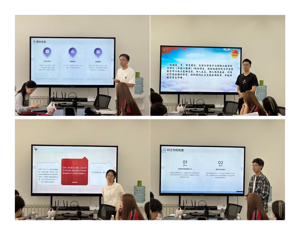 主席团成员进行工作总结,他们回顾了过去一年本部门在青年思想引领、宣传工作推进以及文化活动组织等方面所取得的成果,剖析了存在的问题与不足。在竞选答辩环节,各部门竞选者围绕个人简介、工作经历、职位认识、工作规划等方面发言,分享了自己在青媒的成长与收获。