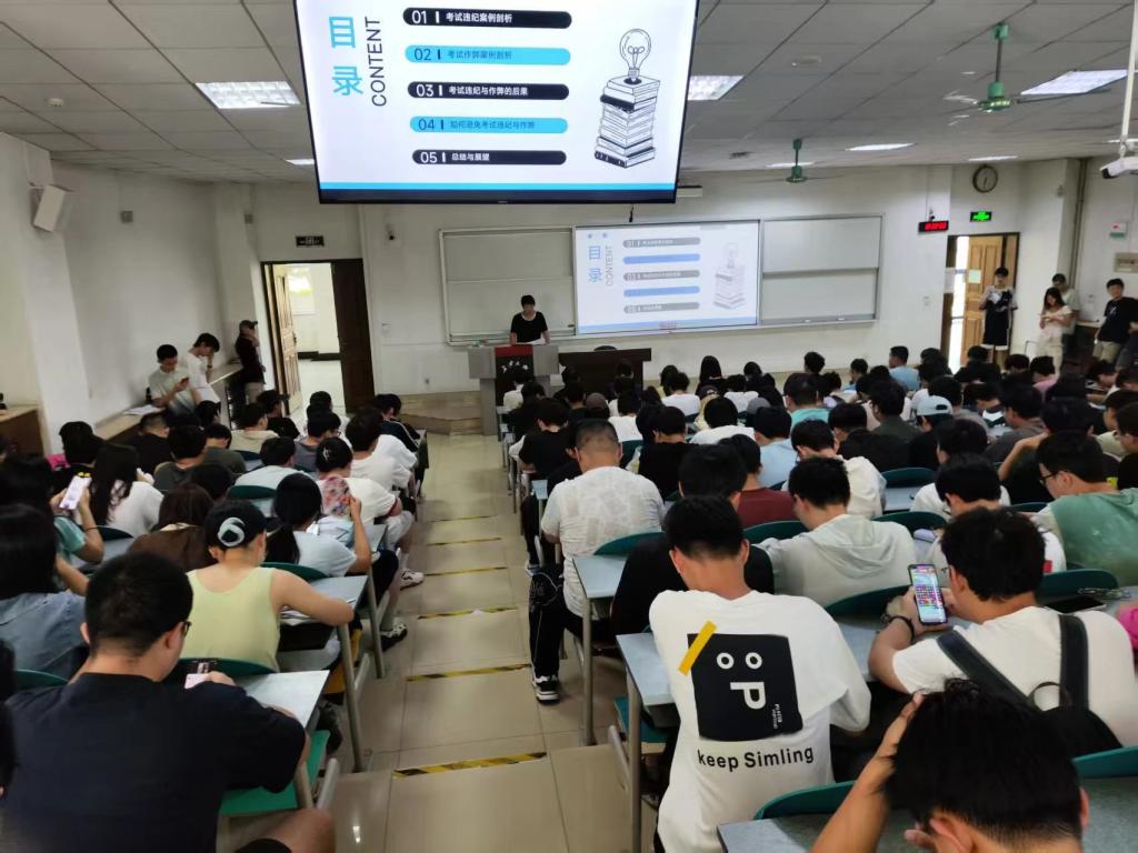 各年级辅导员结合校规校纪、《太阳集团官网本科生考试工作管理办法》 《太阳集团官网学生违纪处分规定》 《太阳集团官网考试违纪及作弊举报规定》等相关文件精神以及近期学校通报的考试违纪案例,将学风考风教育覆盖全体学生,为学生深入解读考试违纪作弊认定标准、处理程序和严重后果,剖析典型案例进行警示教育,引导学生深刻认识诚信考试的重要性,自觉抵制违纪作弊行为。
